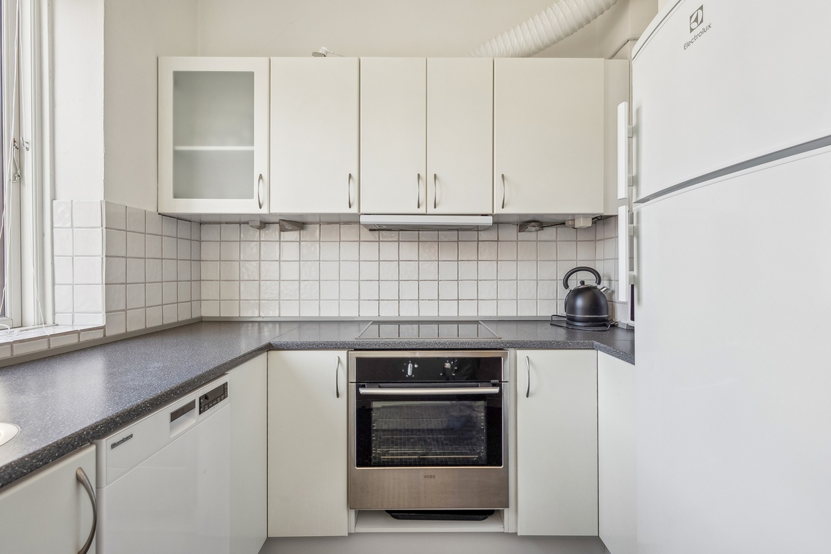 Lejligheden har 2 værelser, herunder et soveværelse, hvilket gør den ideel for enkeltpersoner eller par, der søger en midlertidig bolig, eksempelvis i forbindelse med genhusning. Køkkenet er separat og rummeligt med god plads til opbevaring og madlavning. Det er udstyret med en mikroovn for ekstra bekvemmelighed.