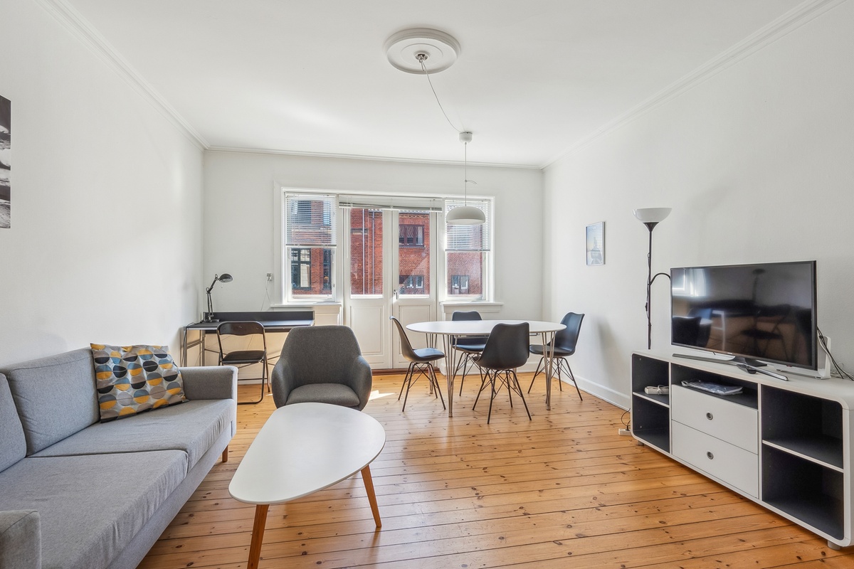 Denne lejlighed er et oplagt valg for dem, der søger en midlertidig bolig med central beliggenhed og moderne bekvemmeligheder.