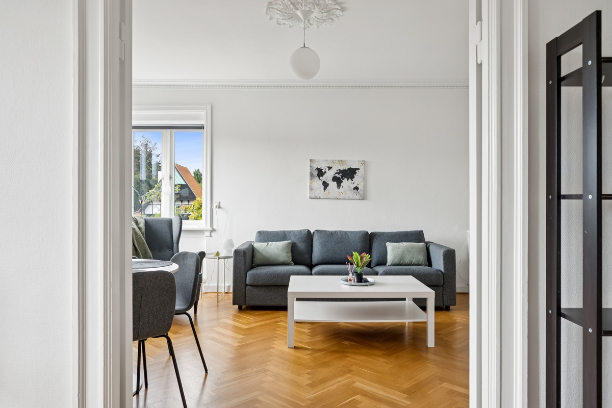 Lejligheden ligger på 2. sal i en mindre ejendom uden elevator. Fra adressen er der kun 8 minutters gang til Skovshoved Havn og Øresund, hvor du kan nyde havneidyl, gåture og frisk luft året rundt. Offentlig transport er også inden for rækkevidde – Ordrup Station nås på cirka 18 minutter til fods.