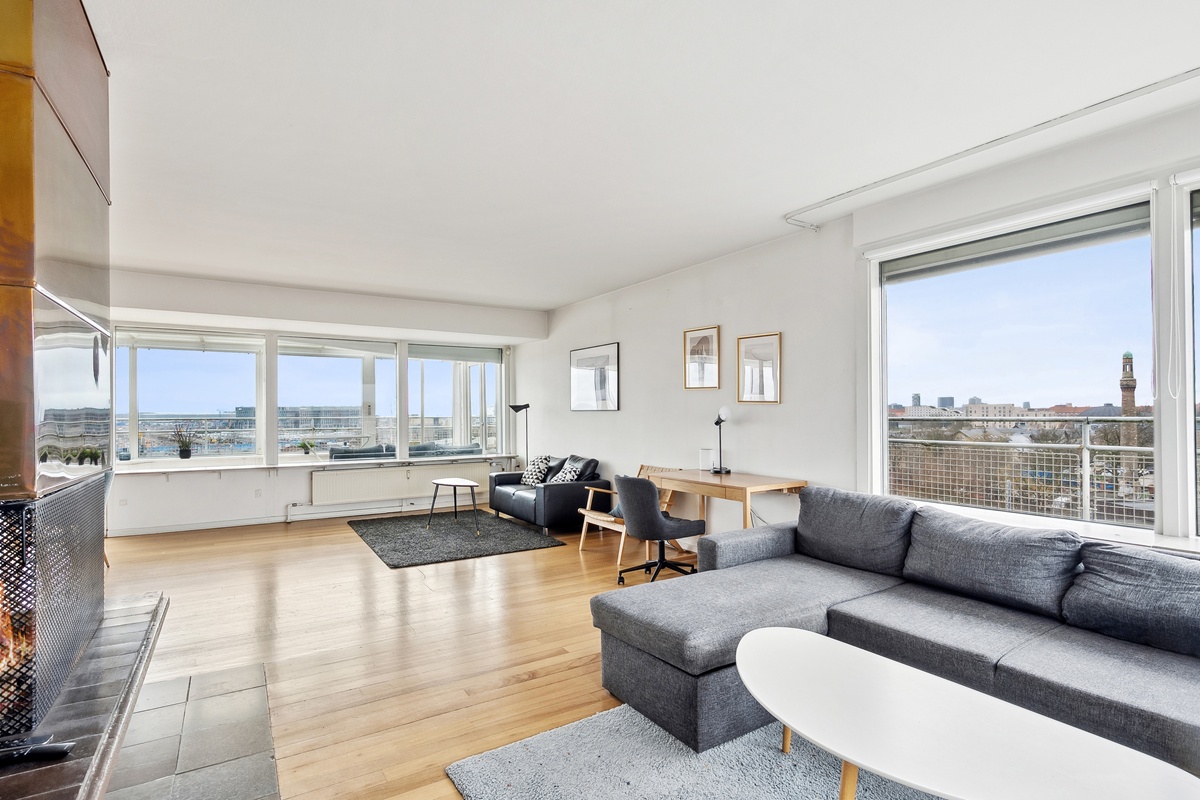 Velkommen til denne eksklusive penthouselejlighed på Strandvejen 6, beliggende i hjertet af Østerbro med enestående havkig og udsigt over Svanemøllen Havn. Denne rummelige lejlighed på 100 m² er ideel som midlertidig bolig.Lejligheden er møbleret og byder på en stor, lys stue, der giver plads til både afslapning og samvær. Herudover er der en charmerende udestue samt en stor altan, hvor du kan nyde den spektakulære udsigt over vandet og de smukke omgivelser. Køkkenet er placeret i et selvstændigt rum og er udstyret med opvaskemaskine og mikroovn. Badeværelset inkluderer både vaskemaskine og tørretumbler, hvilket sikrer en nem og bekvem hverdag.